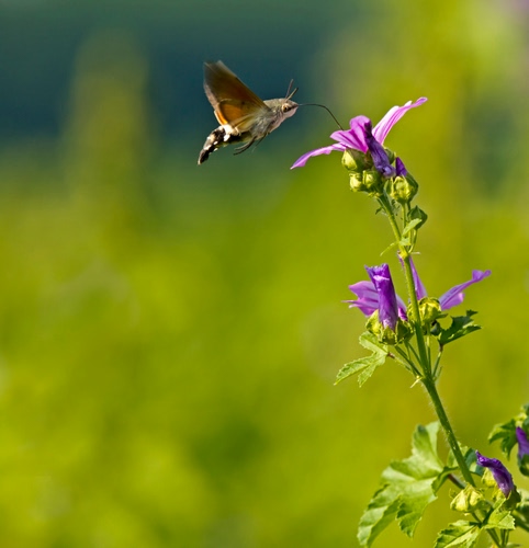 (Macroglossum stellatarum)La Sfinge del galio alias "La Pampogna" a colazione ospite di una pianta selvatica.