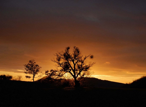 Tag: alberi, tramonto, cielo, controluce, collina, giallo, rosso, rami, arancio.
