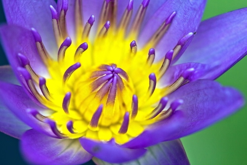 Tag: fiore, viola, giallo, petali, pistilli, verde, macro, sfondo.