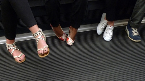 Foto dell'autore Paola S candidata al contest fotografico scarpe su Dizy. Data inserimento: martedì 30 giugno 2015. Titolo: Tre paia di scarpe... più una, in metro