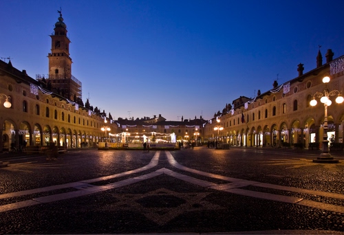 il tramonto dalla piazza di vigevano soprannominata " il salotto d'Italia "