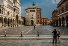 Tag: piazza, bicicletta, torri, albero, torre, portici, finestre, ciclista, case.