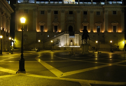 Piazza del Campidoglio in versione notturna.