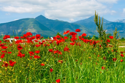 Per me il rosso del papavero è il "rosso". Ho voluto mettere in risalto i papaveri con sullo sfondo i Monti Lepini dove si vede Monte Cacume, quello a sx della foto che sembra una piramide.