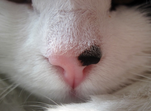 Simpaticissima. Mi ricorda una mia gattina che aveva la stessa macchia sul nasino. Anche questa è una femmina, vero?