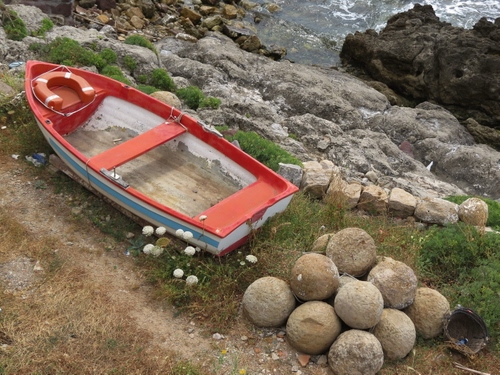 Tag: barca, mare, scogli, rosso, sfere, palle, acqua, sassi, rocce, salvagente, fiori.