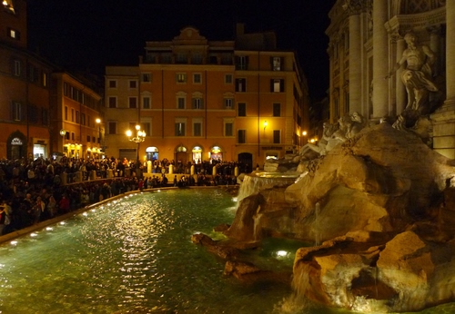 La magnifica fontana di Trevi, come sempre circondata dalla folla