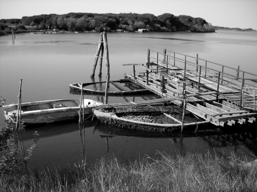 Tag: barche, pontile, acqua, lago, bianconero, fiume, barca, erba, pali, legno.