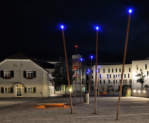 Piazza Municipio a Brunico ed i suoi particolarissimi lampioni
