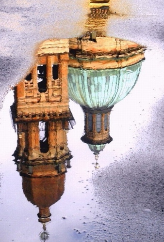 Tag: cupola, riflesso, pozzanghera, acqua, campanile, chiesa, asfalto.