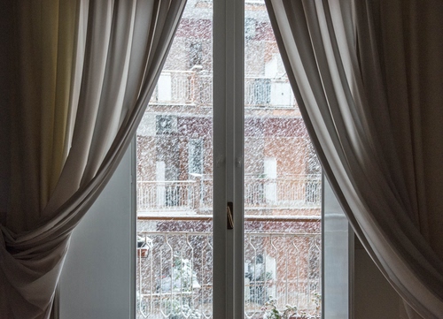 Tag: finestra, neve, tende, tenda, balconi, vetri, vetro, trasparenza, balcone, maniglia, bianco.