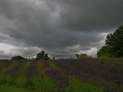 Tag: nuvole, campo, fiori, verde, maltempo, lavanda, alberi, viola, temporale, cielo, piante.
