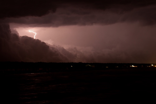Oddio a mano libera beccare un fulmine sarebbe un bel colpo....Questa ha esposizione 13 sec. f 4,5 Iso 200. Aggiunto solo un pelo di nero e di contrasto con LR. Molti rimpianti perchè quella sera vidi in lontananza tantisimi fulmini sul mare ma appena arrivato a portata ho beccato solo questo mentre il temporale si stava ormai spostando. A posteriori con un cavalletto sul molo in mezzo al mare forse avrei rischiato qualcosina.....