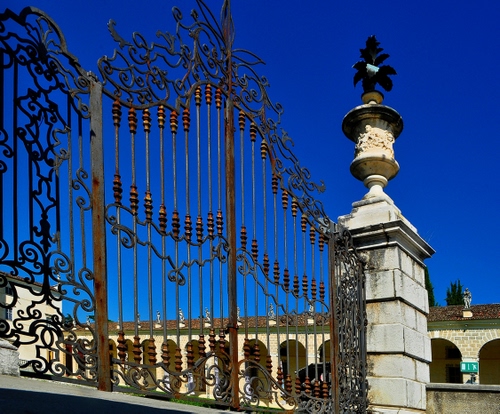 Tag: cancello, cielo, ferro, archi, vaso, colonna, portico, cancellata, pilastro, metallo, blu, tetto.