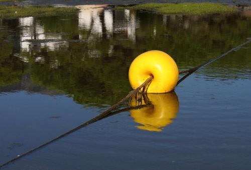 Galleggiante giallo in una pozzangherona a Feriolo, sul Lago Maggiore.