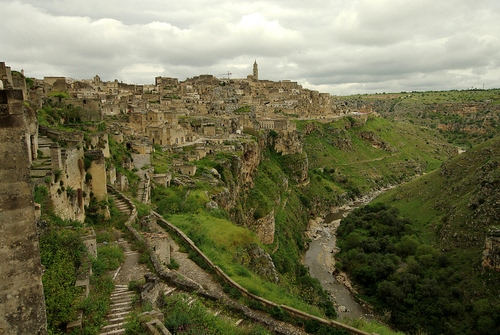 Tag: cielo, nuvole, verde, scale, campanile, case, fiume, torrente, panorama, città, matera, borgo, paese, gradini, paesaggio, gru, erba, sassi, mura, scalinate, alberi.