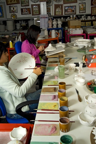 Le famose ceramiche di Lodi, reparto decorazione manuale che fa di ogni ceramica un pezzo unico