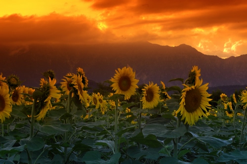 questi girasoli sembrano smarrirsi alla calar del sole la sera.