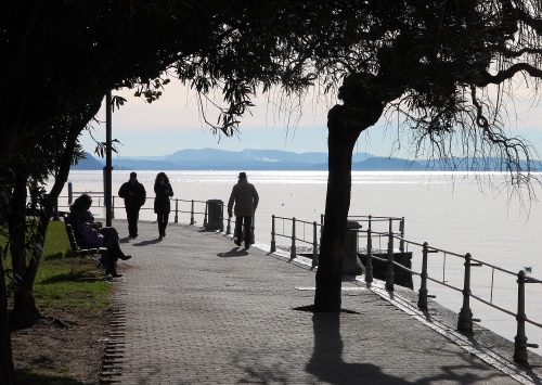 Tag: lago, panchina, acqua, alberi, silhouette, ringhiera, passanti, lungolago, controluce, ombre, persone, montagne, panchine, albero.