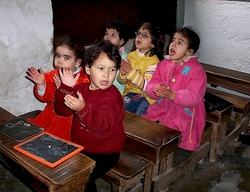 Che bello, panche di legno e lavagnette e gesso invece di tablet! |