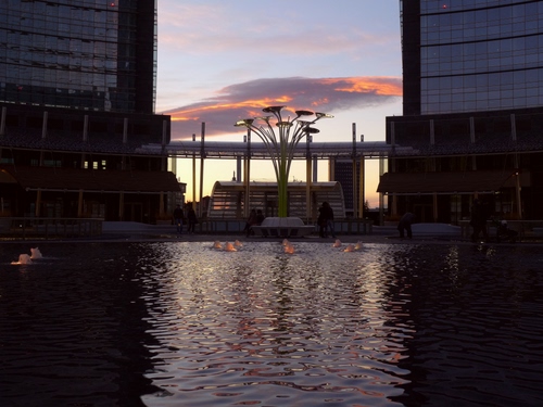 Tramonto visto dalla nuova piazza Gae Aulenti a Milano