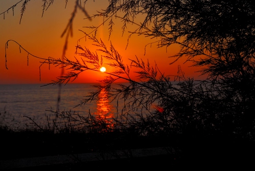 Tag: mare, tramonto, rami, sole, rosso, riflesso, arancione.