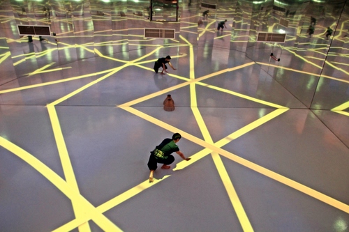 Tag: giallo, linee, geometrie, specchio, pavimento, riflessi, uomo, persone, strisce, riflesso, righe, specchi, sport.