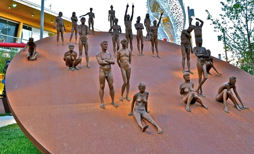 Tag: donne, monumento, uomini, statue, persone, nudi, expo, metallo, cerchio.