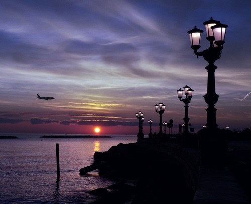 Tra l'altro l'aereo starebbe atterrando. Ma l'aeroporto di Bari Palese è a nord. Ed essendo l'alba ad est, l'aereo si sta dirigendo a sud.