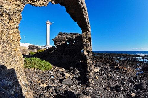 Tag: mare, faro, cielo, spiaggia, arco, pietre, ruderi, rocce, verde, rudere, colonna, scogli.
