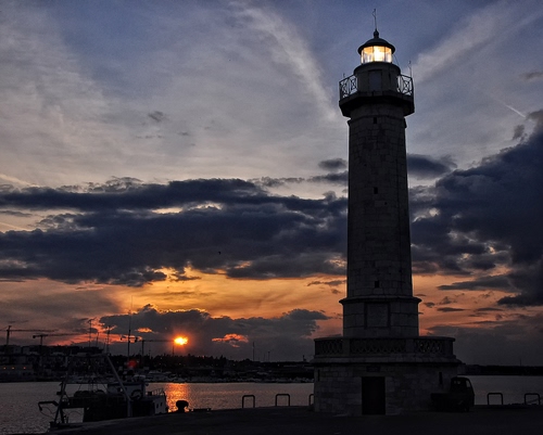 Foto dell'autore Diana Cocco candidata al contest fotografico faro su Dizy. Data inserimento: mercoledì 16 dicembre 2015. Titolo: il faro di molfetta al calar del sole