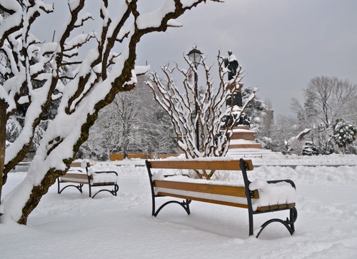 Tag: neve, inverno, alberi, panchine, monumento, lampione, bianco, panchina, cielo, statua, grigio, due, rami.