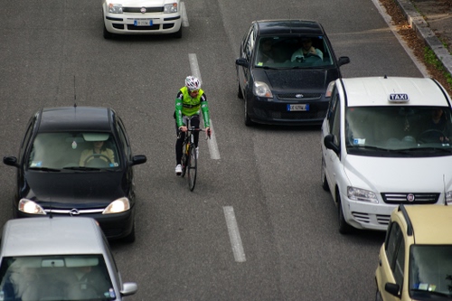 Foto dell'autore dofilacc candidata al contest fotografico bicicletta su Dizy. Data inserimento: mercoledì 12 febbraio 2014. Titolo: Corsa nel traffico