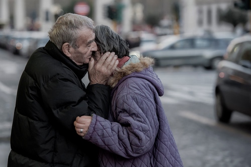 Una coppia non proprio giovanissima, non messa in posa in uno scenario piacione...