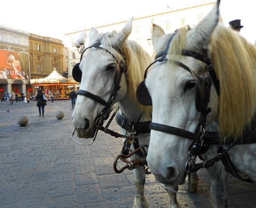 Foto dell'autore marivodo candidata al contest fotografico due su Dizy. Data inserimento: giovedì 7 gennaio 2016. Titolo: 2 cavalli in piazza