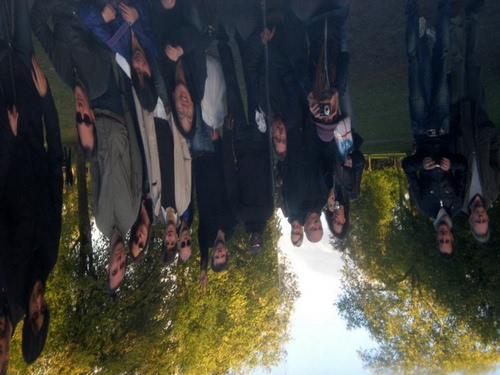 Ed eccoci tutti sottosopra a fotografarci in questo grande specchio in un parco di Londra!