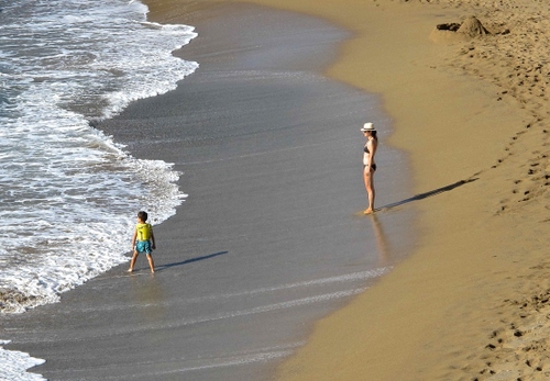 Nella tua foto è bella la divisione verticale in tre strisce, anche se l'onda tagliata in basso da sensazione come se qualcosa mancasse - però proprio questa divisione a tre distoglie ulteriormente attenzione dalle due figure. In più la composizione della foto non aiuta, le due persone sembrano messe a caso nel rettangolo - non seguono ne la regola dei terzi, ne la divisione aurea, ne sono al centro...
