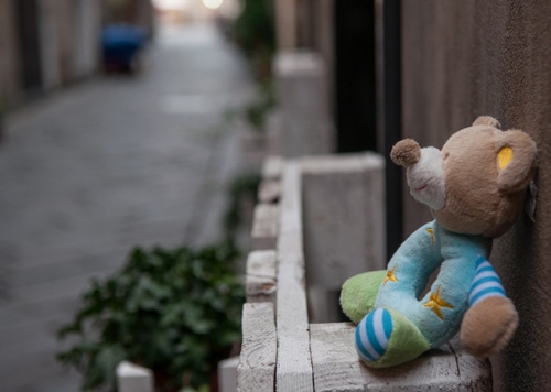 La solitudine dell'orsetto... Sembra quasi perso per strada e che un'anima pia l'ha messo su in attesa che venga ritrovato.
