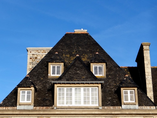 Abbaini di Saint Malo - Francia, sopra il camino è appollaiato un gabbiano.