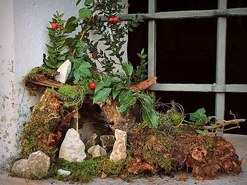 Grazie, fatto sulla finestra di una chiesetta di montagna con quello che ho trovato li attorno. |