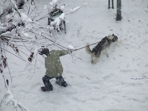 Toglimi il guinzaglio voglio giocare con la neve..