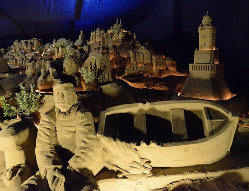 Particolare di un presepe di sabbia