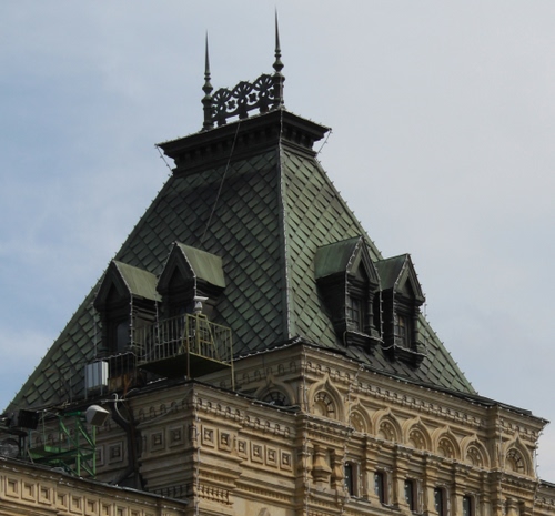 Abbaini sul tetto dei grandi magazzini GUM, a Mosca.