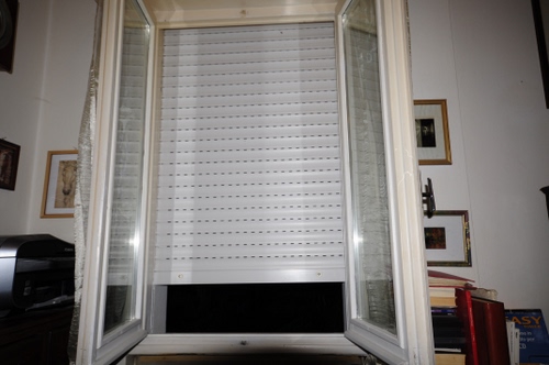 Dal mio studio, alla mia postazione pc, la serranda come la palpebra a mezz'asta di un occhio stanco.