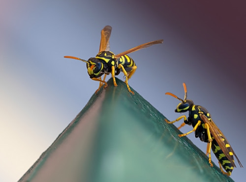 Tag: insetti, ali, vespe, due, giallo, nero, macro, api, verde, animali.