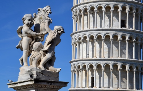 Gruppo marmoreo della fontana monumentale (la fontana dei putti) in Piazza dei Miracoli a Pisa.