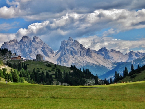 Tag: nuvole, alberi, cielo, prato, verde, montagna, montagne, rifugio, cime, casa, erba, pascolo, rocce, case, panorama, paesaggio, pini, prati, abeti, baita, sentiero, monti.