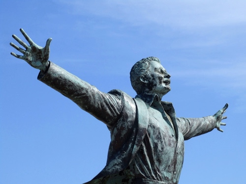 Statua in bronzo di Domenico Modugno sul lungomare di Polignano a Mare (BA)