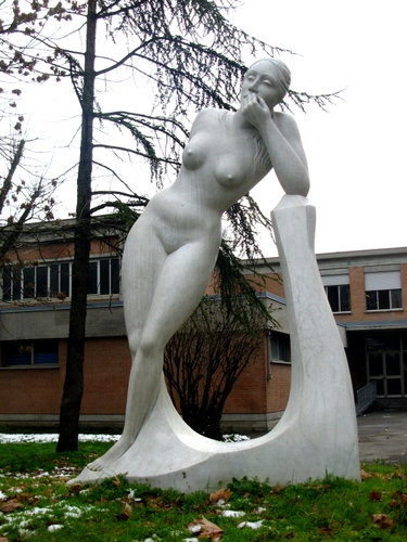 Monumento situato davanti all'ingresso della biblioteca comunale di Campogalliano.