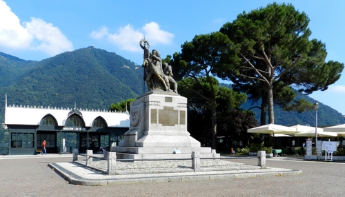 Il Monumento ai Caduti troneggia in piazza Risorgimento fuori dall’imbarcadero. È un gruppo bronzeo dello scultore milanese Angelo Galli che rappresenta, attraverso cinque figure di combattenti, le principali tappe dell’unità dell’Italia (le tre Guerre d’Indipendenza, la presa di Roma e la prima Guerra Mondiale). Il gruppo statuario è posto su un alto basamento in ghiandone che presenta alla base un doppio gradino. Fu inaugurato il 18 marzo 1923 con una solenne cerimonia; nel 1945 vi fu aggiunta una lapide a ricordo dei caduti della seconda Guerra Mondiale, accompagnata da un’epigrafe del poeta chiavennasco Giovanni Bertacchi. Nel 1986 il monumento fu restaurato a ricordo del cernobbiese Gianni Baccarini, combattente della Grande Guerra.
